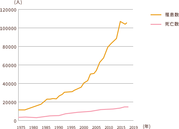 乳がん罹患数と死亡数のグラフ