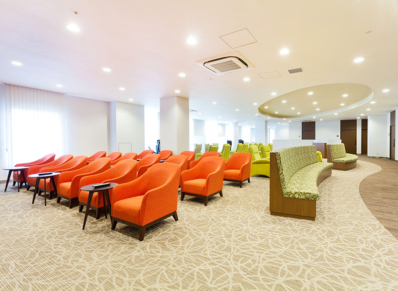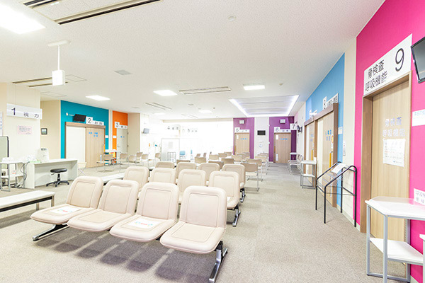 - 健診待合フロア光があふれるフロアに、ゆったりと過ごせる空間。色と番号を大きく用いて、各検査室を分かりやすくしました。