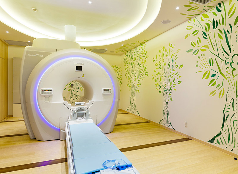 - MRI検査室放射線を使わない体に優しい検査。暗い狭いではなく、明るく広い検査室です。