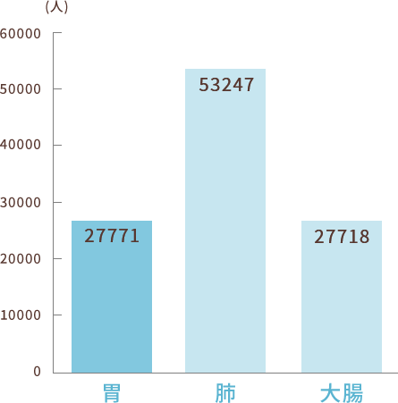 食べ物を消化する胃。この内側の粘膜から胃がんは発生します。高塩分食やアルコール、喫煙がリスクとされていますが、なかでもヘリコバクター・ピロリ(以下ピロリ菌)の感染が大きな要因とされています。がんの死因を部位別に見たとき、男性では2番目、女性では5番目に多いがんです。
