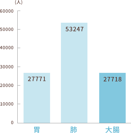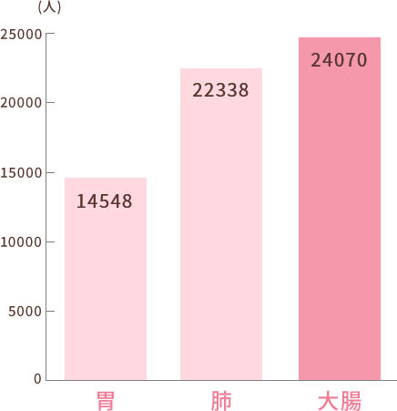 がんの死因のうち、女性で1番多いのは大腸がんです。男性でも3番目となっています。