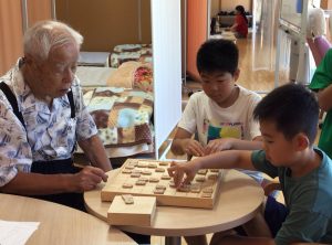 児童クラブの子ども達とお喋りや将棋、たこ焼き作りをし