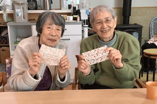 出来上がりに感心され、手作りマスクをつけて来所される方もいます(*^^*)