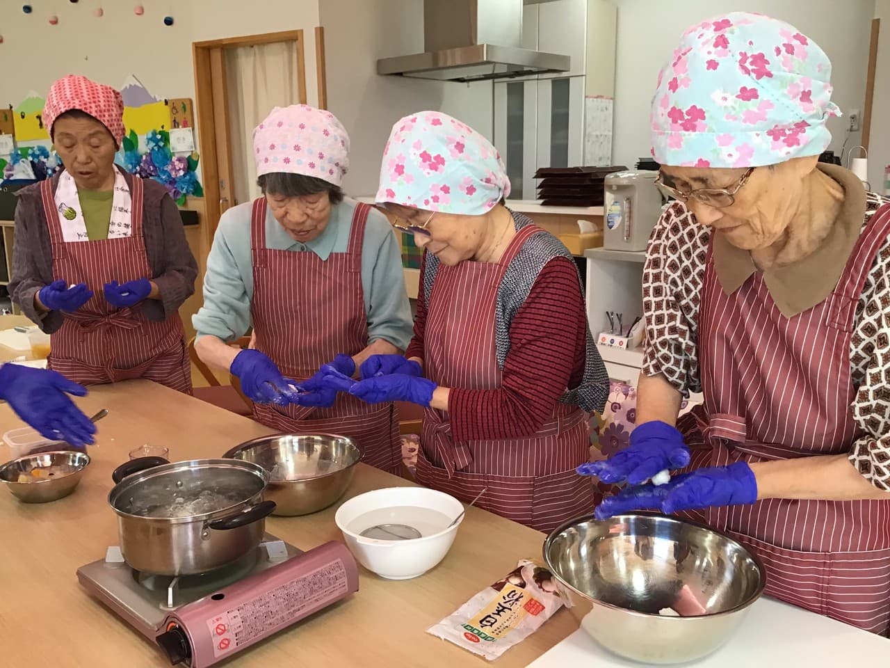 令和2年8月 おやつレク 今月の調理レクは「白玉みつ豆」 だんごをこねるところからスタートです。 「昔はよくおやつに作ったね~」とスイスイ手が動きます。 美味しいおやつをいただいて暑い日を乗り切りましょう。