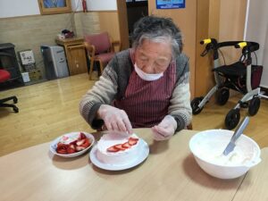 切ったイチゴを丁寧に並べます