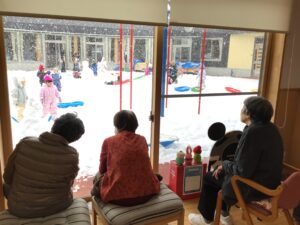 園庭に積もった雪で子供たちは元気!元気!