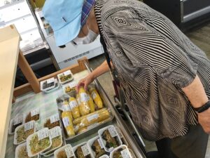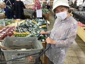 新鮮な野菜や美味しそうなお団子を購入し