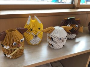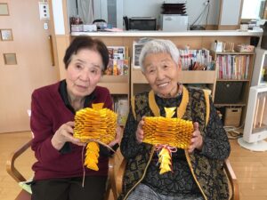 折り紙手芸 先月から作り始めた打ち出の小槌が完成いたしました!!! 新年に向け「玄関に飾る!」と意気込み 長い期間をかけてゆっくりと取り組んでいました(^^♪ 他にも動物や兜などの季節ものにも挑戦し、 Cocoaでは折り紙手芸が人気です!