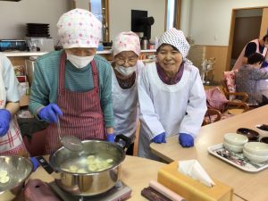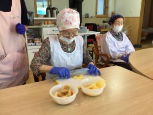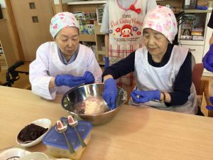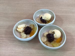 手作りおやつ あんみつ作りをしました♪ 白玉団子を手作りし、フルーツやアイス、あんこをのせて 豪華なあんみつが完成しました(^^) 白玉団子は長年作ってきた利用者さんの手の感覚で もっちり美味しい白玉に出来上がりました!
