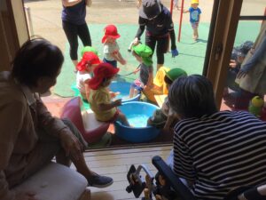 水遊びだけでなく、朝の挨拶をしてくれたり足水をして楽しんでいたり