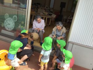 元気いっぱい水遊びしている様子をデイサービスから微笑ましく見ています♡