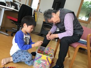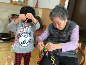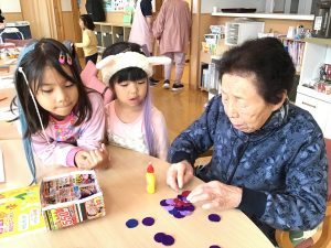 Cocoa保育園の3,4,5歳児がデイフロアでお化粧ごっこや輪つなぎ、