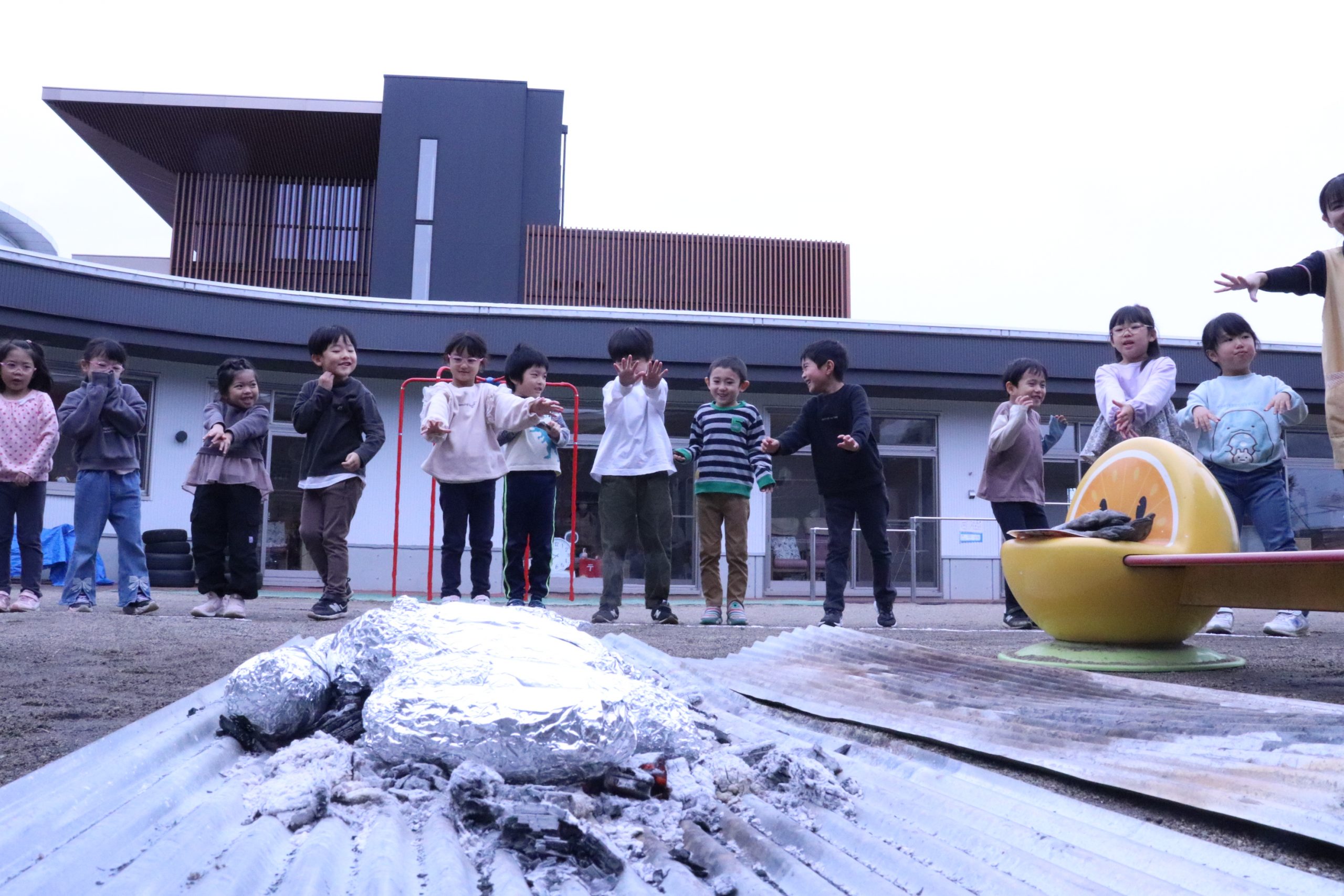 11月上旬に焼き芋会を行い園児、デイサービスの利用者の方、児童クラブのおともだちでおいしくいただきました✨