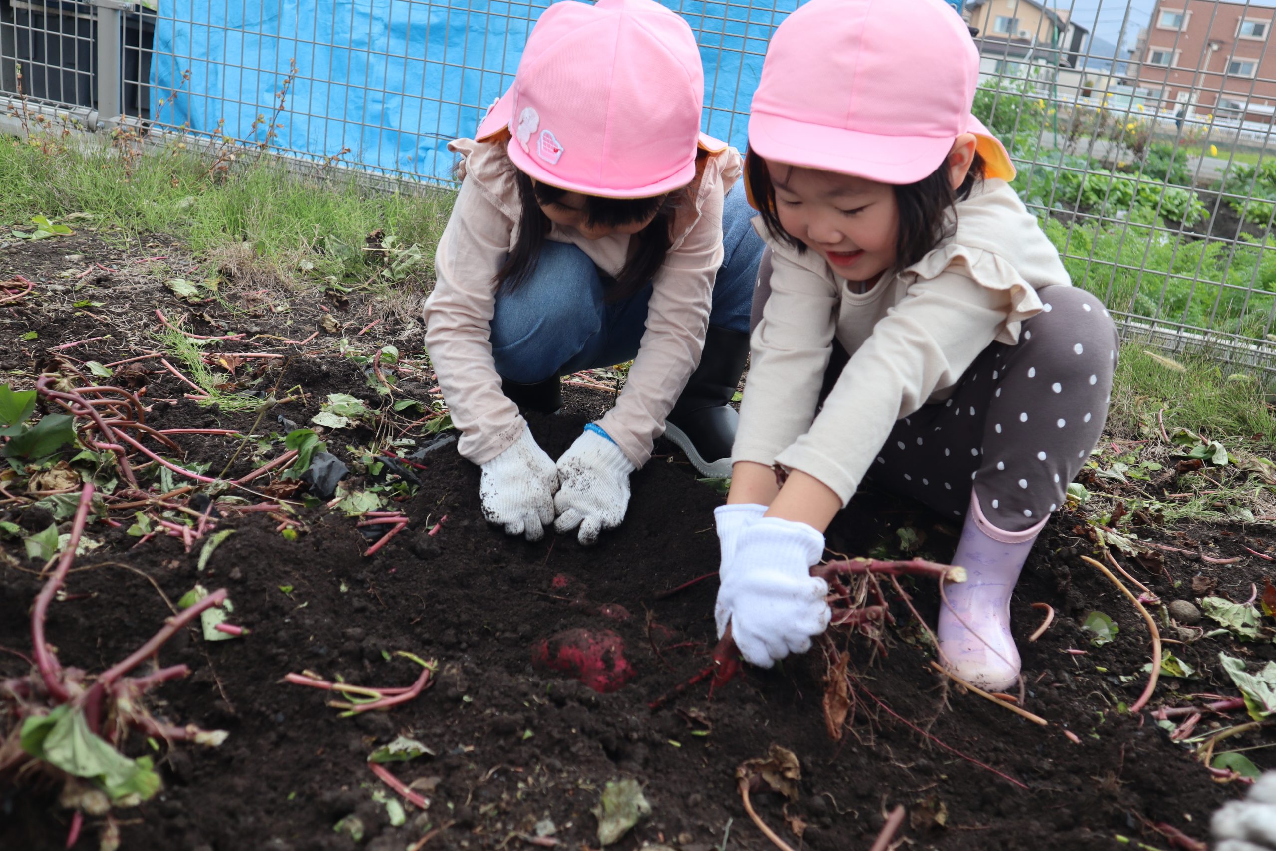 次から次へと土から頭を出すサツマイモに笑顔があふれていました。