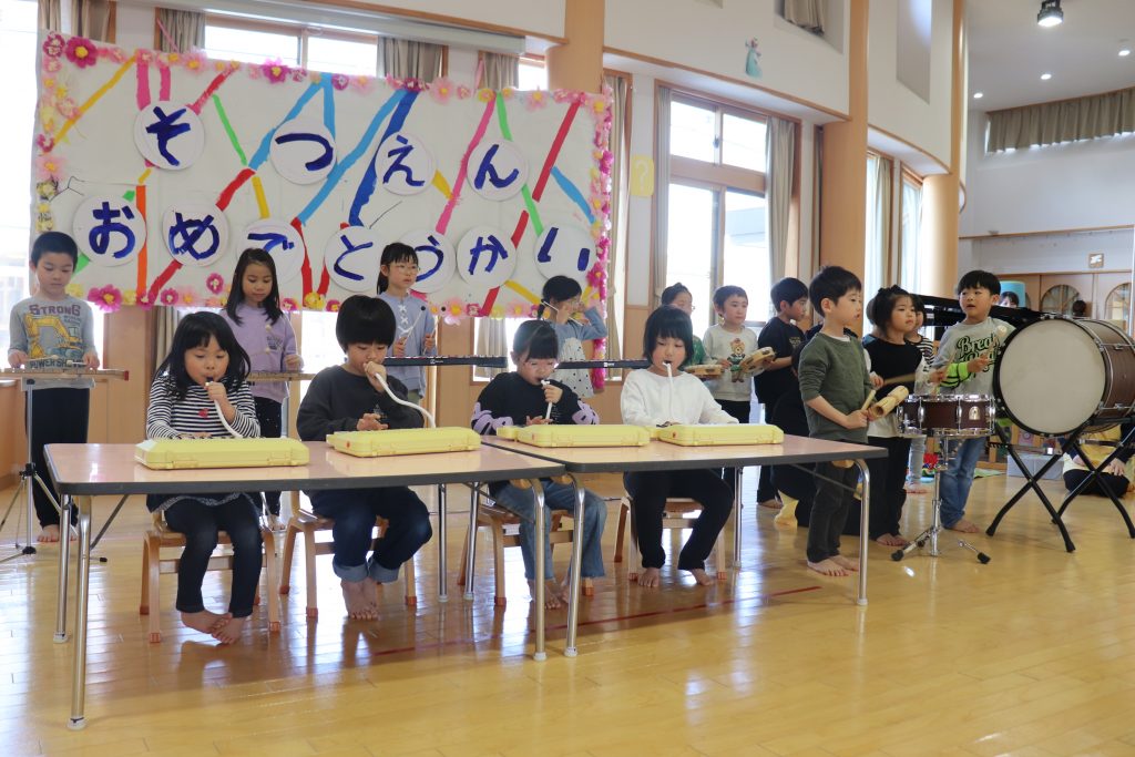 最後に年長さんが卒園式で披露した合奏を発表してくれました。