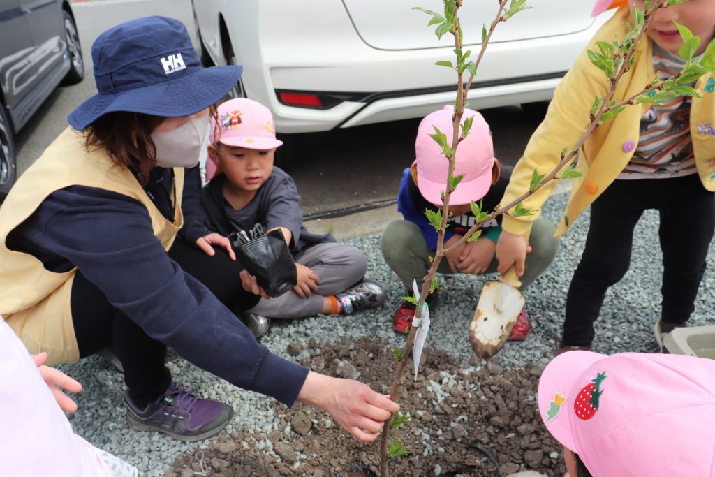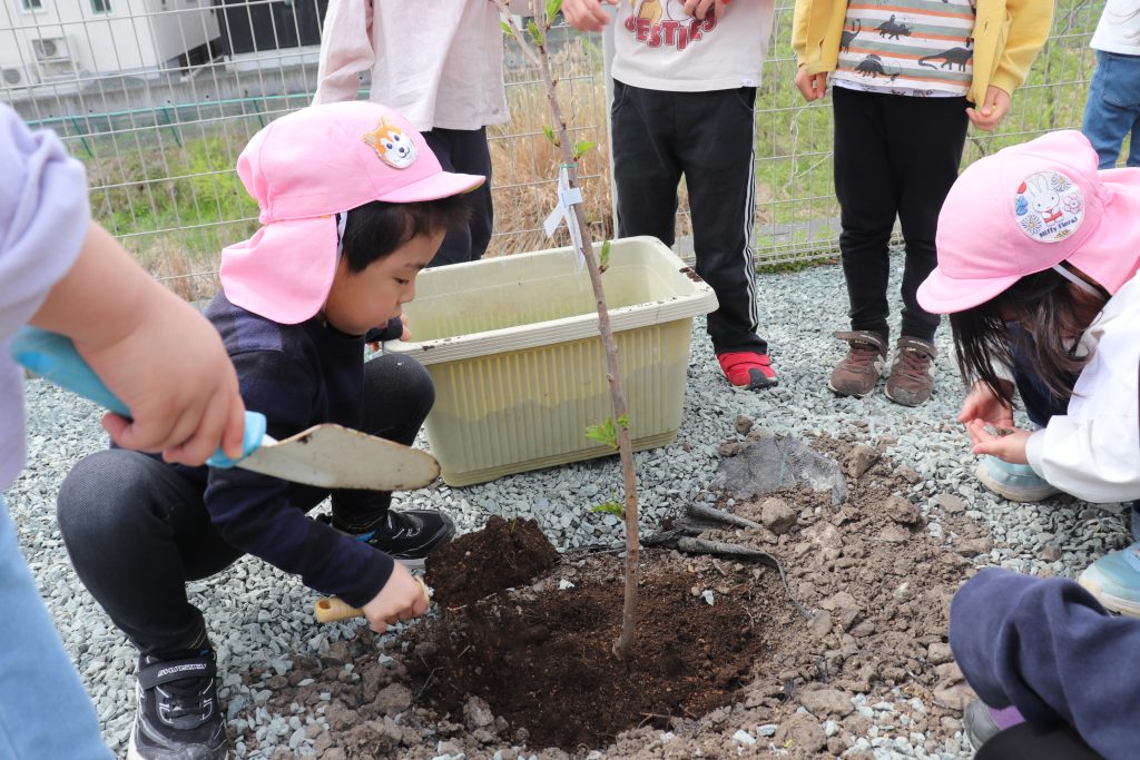 年長組は予防医学協会駐車場に桜の植樹を行いました。