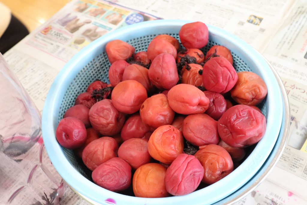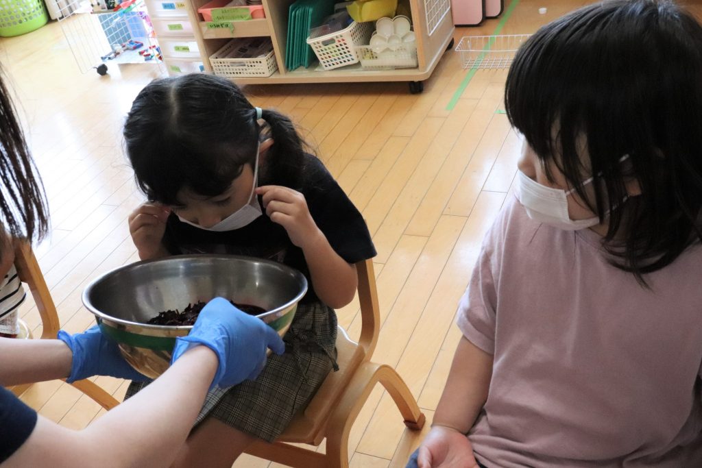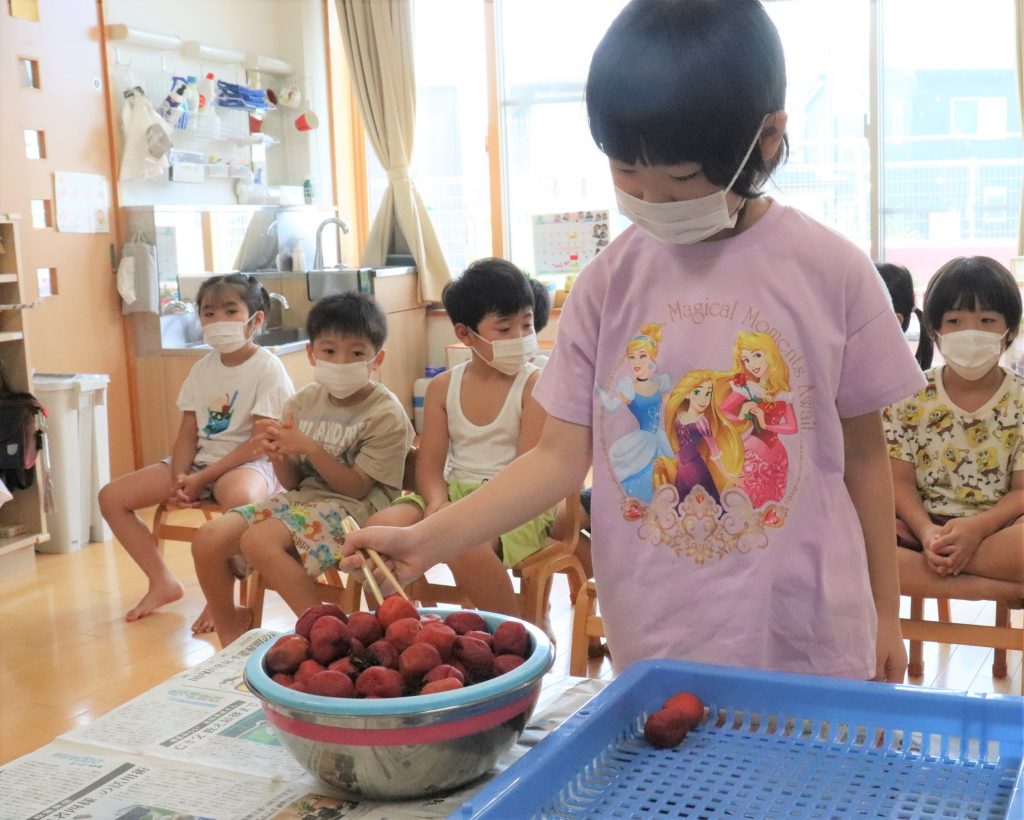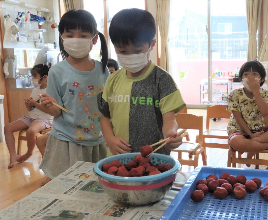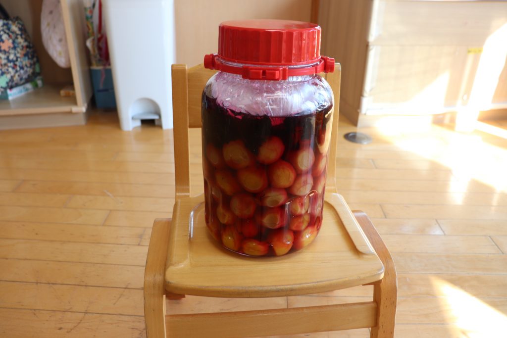 保存していた瓶から梅と紫蘇を取り出すと、保育室中に匂いが。
