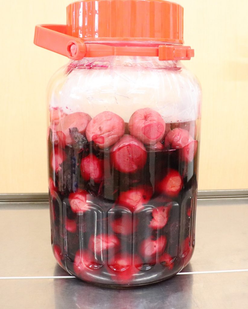 11月頃まで再び梅酢と共に保存します。おいしくなぁれ。