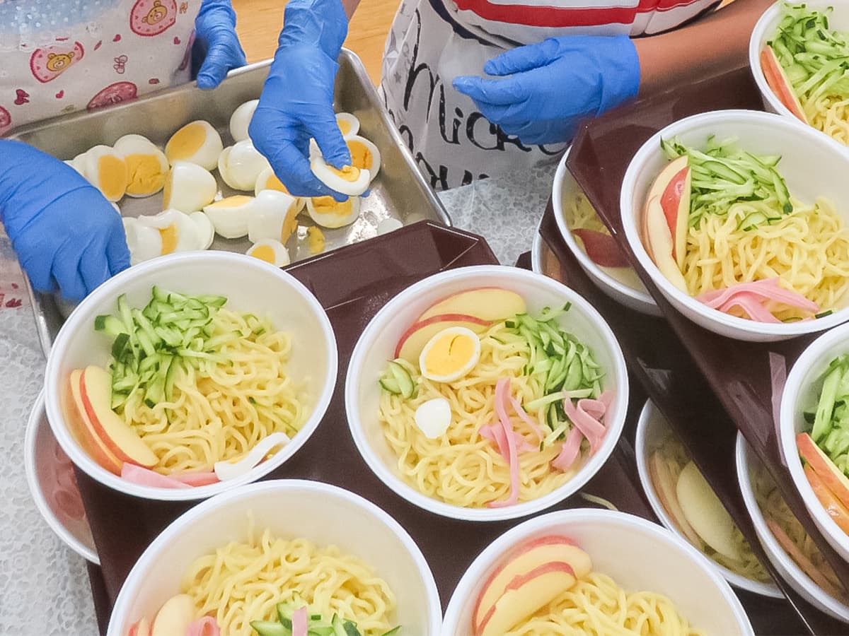 宿題の後は、手作りおやつを食べます。献立は管理栄養士が作成しています。