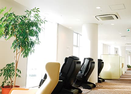 人間ドックは広々とした専用フロアでご受診いただけます。子宮頸がんや乳がんなどのレディース検査は女性専用フロアで。マッサージチェアにたくさんの雑誌、無料Wi-Fiも完備し、待ち時間もゆったりと過ごせます。